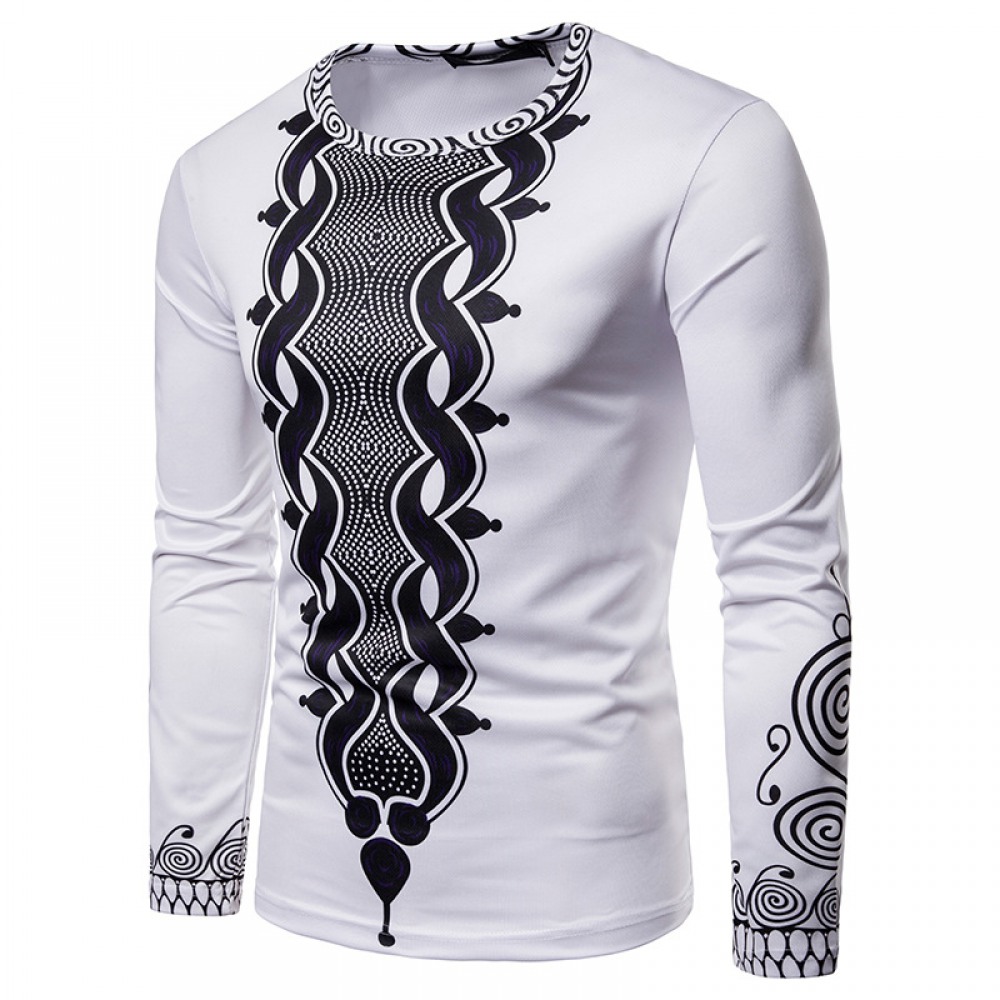 Men's Fashion Wave 3D Digital Printing Round Neck Long Sleeve T-Shirt