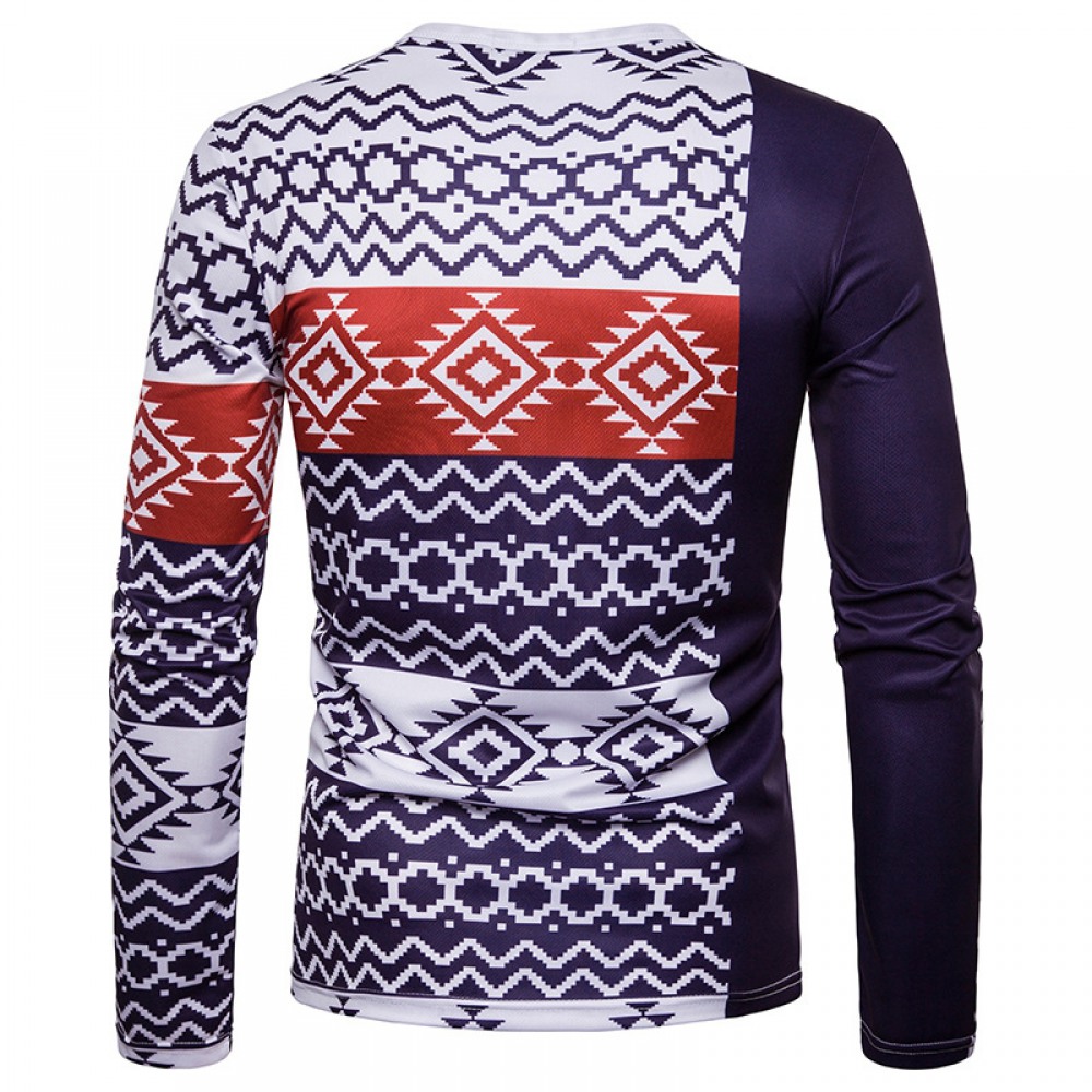 New Men's Large Size 3D Retro Pattern Printing High Neck Long Sleeve T-Shirt Bottoming Shirt