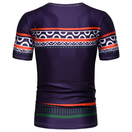 New Men's Tiled African Ethnic Style Long Short-Sleeved Hip-Hop T-Shirt