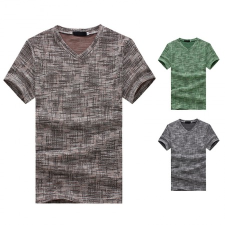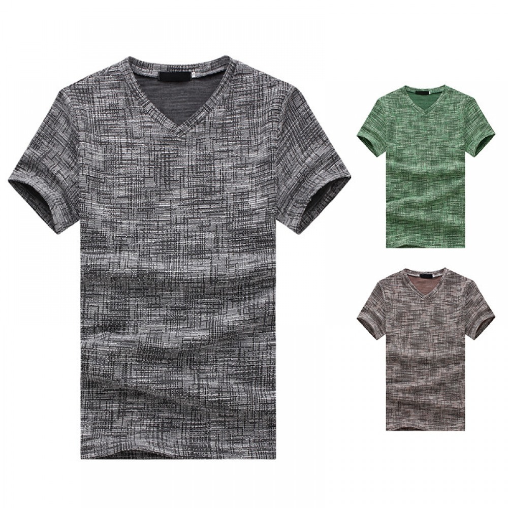 Summer Men's English Jacquard Fashion V-Neck Short-Sleeved T-Shirt