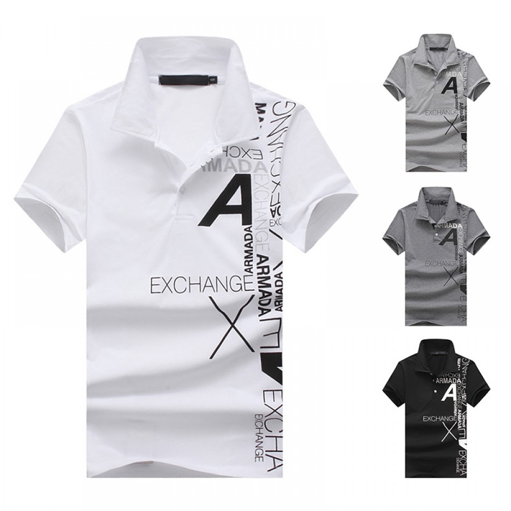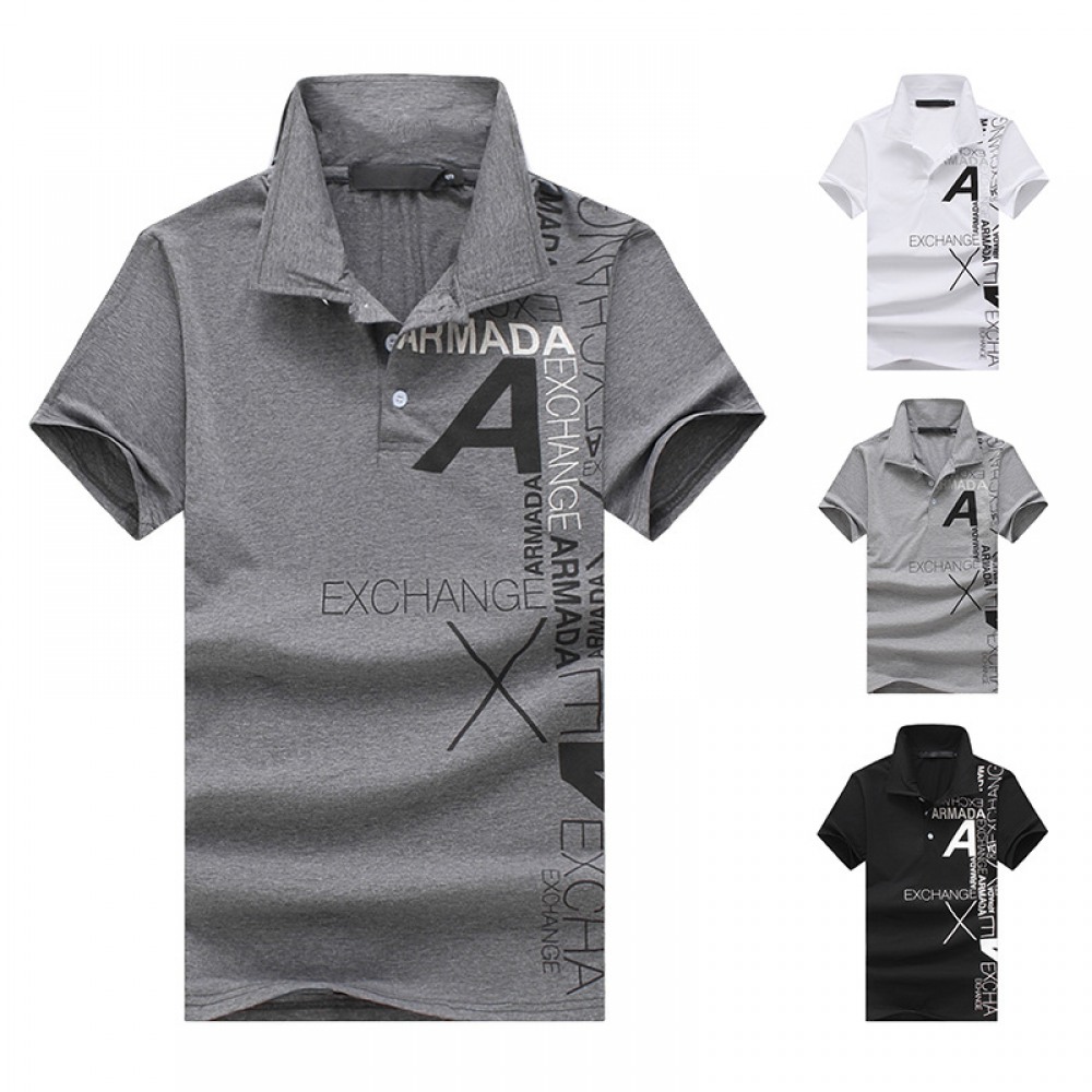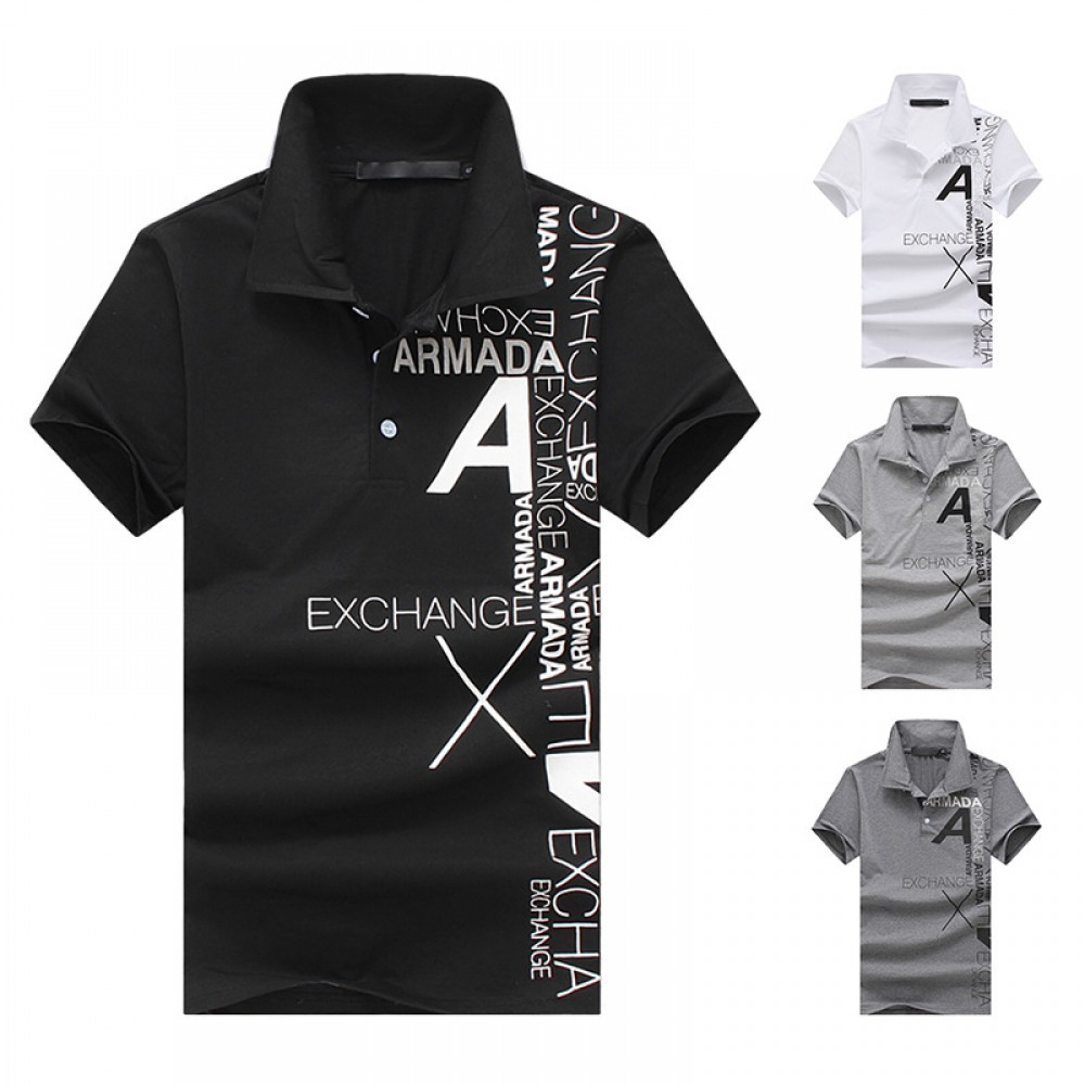 New Men's Style A Letter Printing Lapel Short-Sleeved Large Size T-Shirt