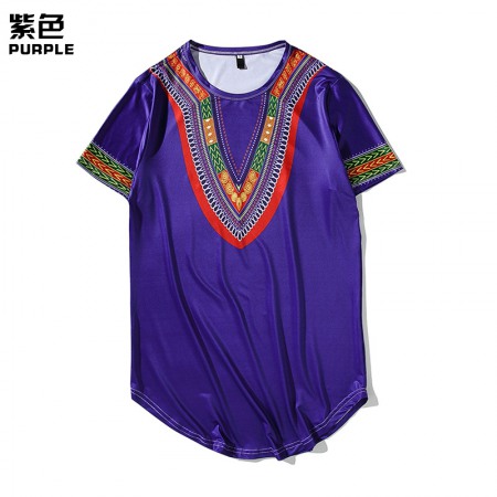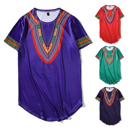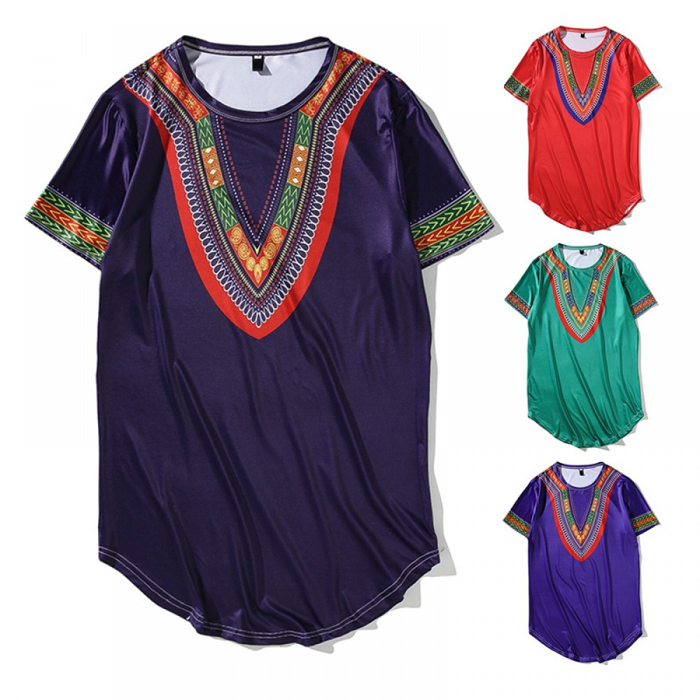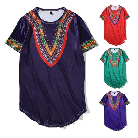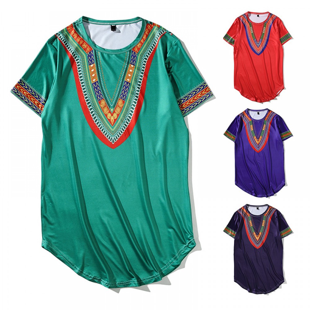 New Men's Tiled African Ethnic Style Long Short-Sleeved Hip-Hop T-Shirt
