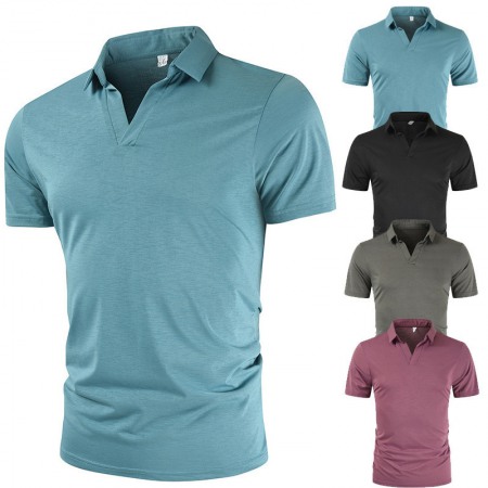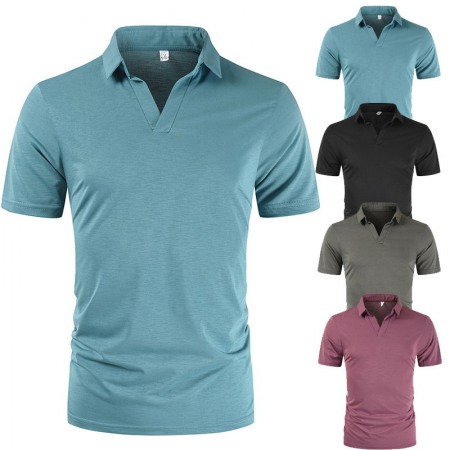 Summer New Cross-Border Lapel Short Sleeve Bottoming Shirt Plus Size Short Sleeve Men's T-Shirt
