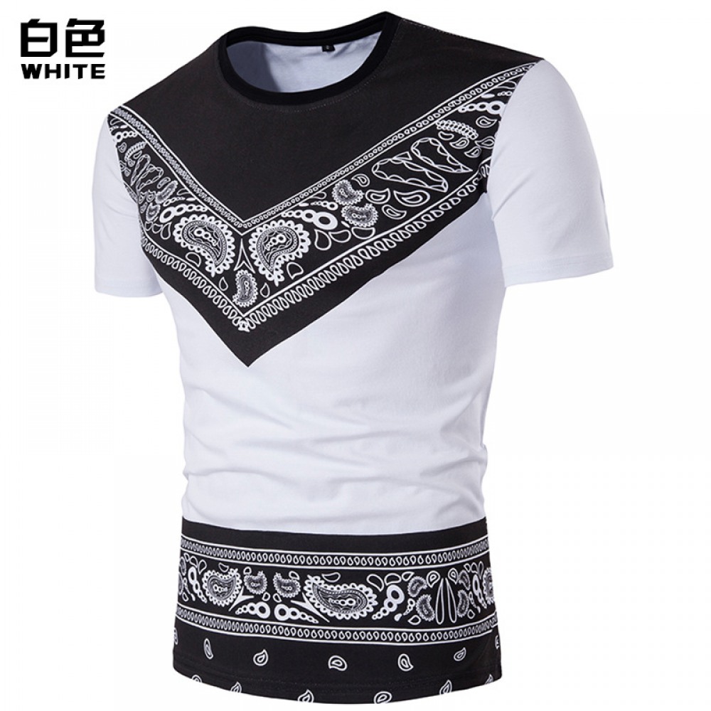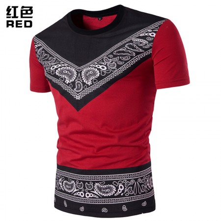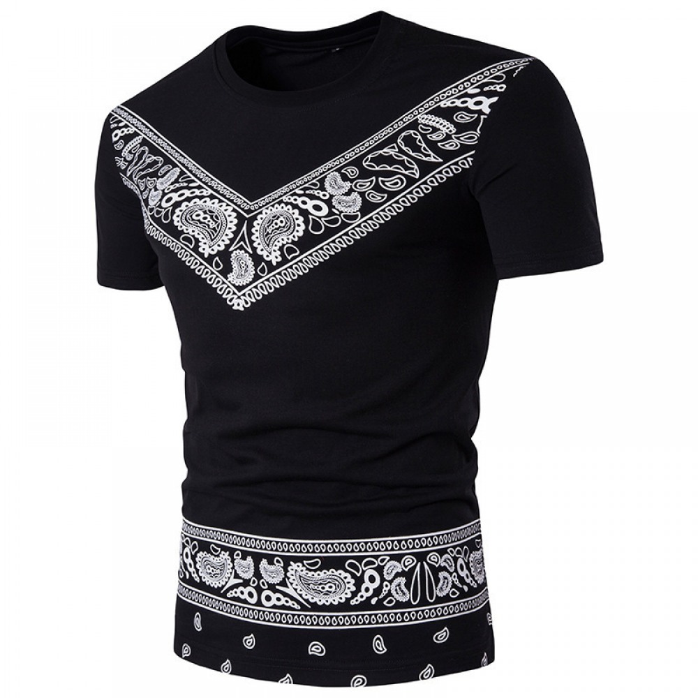 Summer New Men's Round Neck Fashion Short-Sleeved Ethnic Print All-Match T-Shirt